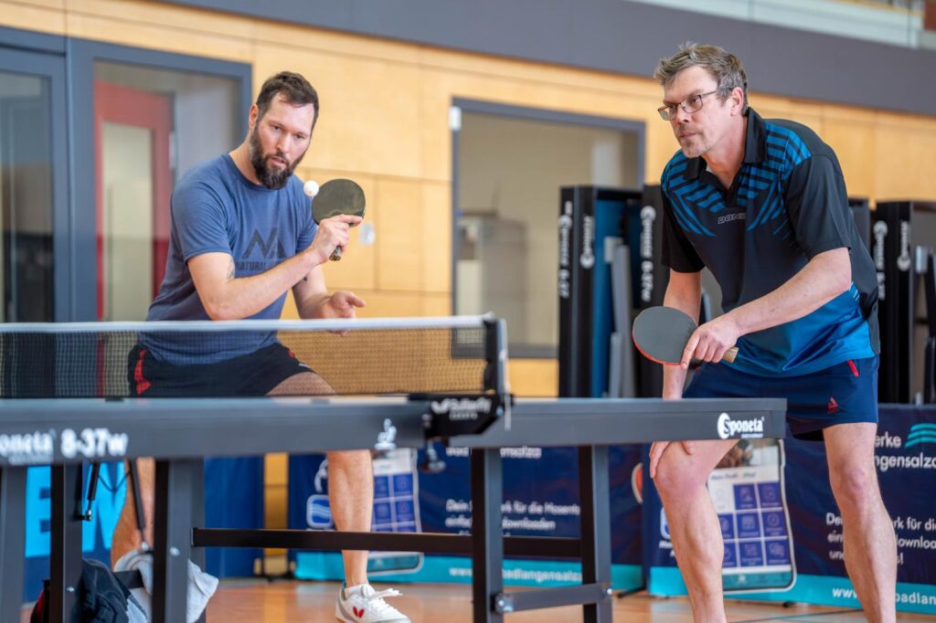Allen voran Maik Talkowsky, einer der Leidgeprüften der Hinserie, überzeugte. Dabei war der Blau-Weiße ohne festen Doppelpartner in die Kur- und Rosenstadt gereist. Erst kurz vor Turnierbeginn fand er sich mit Chris Hackensellner vom gastgebenden TTV TWB Bad Langensalza zusammen – eine Zufallspaarung also. Doch das Duo harmonierte von Beginn an und ließ zunächst Florian Melchart/Joel Mörstedt nicht die Spur einer Chance. Die harte Bewährungsprobe gegen Jens Nölker/Maximilian Brüning (Blau-Weiß Mühlhausen/Post SV) wurde mit 3:1 gemeistert; im Halbfinale schaltete man das zweite Überraschungsduett, Thomas Rohrberg und Robin Uthe (beide Blau-Weiß Mühlhausen), mit dem gleichen Ergebnis aus, um sich schließlich im Endspiel mit 3:0 gegen Jan Bertuch/Silvio Kunert (beide TSV Bad Tennstedt) zu behaupten.