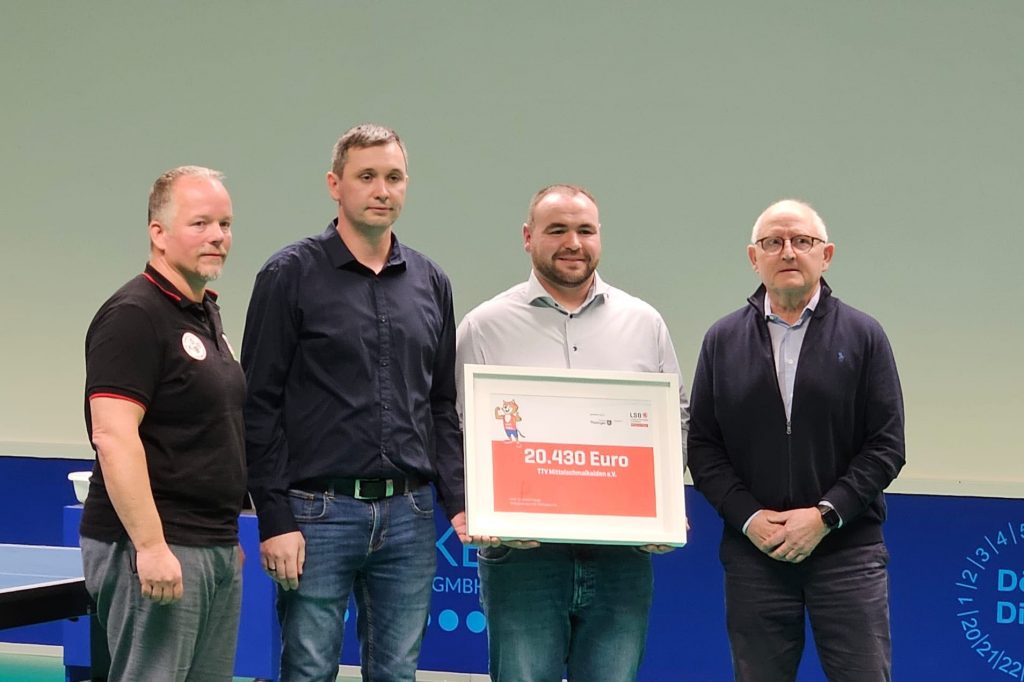 Der Landessportbund, in Vertretung des KSB mit Geschäftsführer Andre Schedler, der den Verein über Förderprogramme half, hatte sich noch etwas Besonderes überlegt. Bernhard Reißner, Finanzwart und Nachwuchstrainer des TTV Mittelschmalkalden, der federführend an der Spitze des Bau- und Organisationsprojektes stand und sich unermüdlich dafür einsetzte, erhielt die Ehrennadel des LSB.