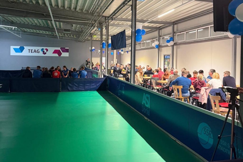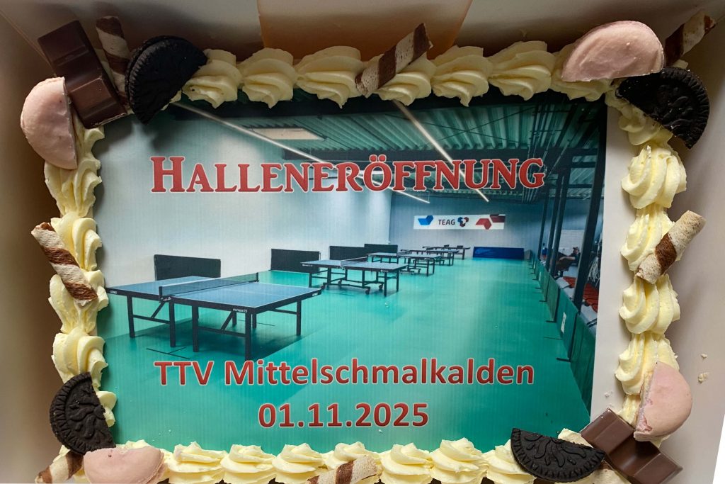 Am 01. November 2025 war es soweit- der TTV Mittelschmalkalden konnte vor 130 geladenen Gästen ein Werk harter, ca. zweijähriger Arbeit präsentieren: eine neu umgebaute Tischtennishalle mit professionellen Bedingungen. Sicherlich umso bemerkenswerter, dass ein 60 Mitglieder starker Tischtennisverein im Ortsteil der kleinen südthüringischen Stadt Schmalkalden dieses Projekt mit sehr viel Eigeninitiative verwirklichte.